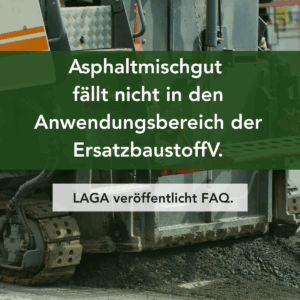 Asphaltmischgut fällt nicht unter die Ersatzbaustoffverordnung (EBV) Mit der am 15. September 2025 veröffentlichten dritten Auflage der FAQ zur Ersatzbaustoffverordnung (EBV) ist eine zentrale Frage für die Asphaltbranche nun endgültig geklärt: Asphaltmischgut fällt nicht in den Anwendungsbereich der EBV – unabhängig davon, ob Ausbauasphalt oder Sekundärbaustoffe wie Schlacken oder Gleisschotter